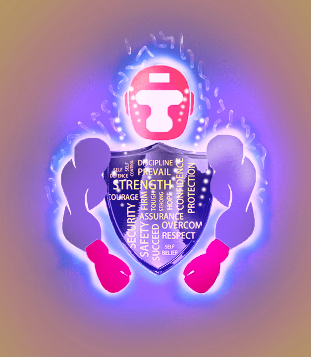 First I started off my postcard by making a mood board of everything that boxing gave me. I used words such as: discipline, overcome, confidence etc… I then placed the mood board onto a shield that I designed using shapes. The reason why I used a shield is because boxing was a source of protection for me and I wanted to visually narrate that.