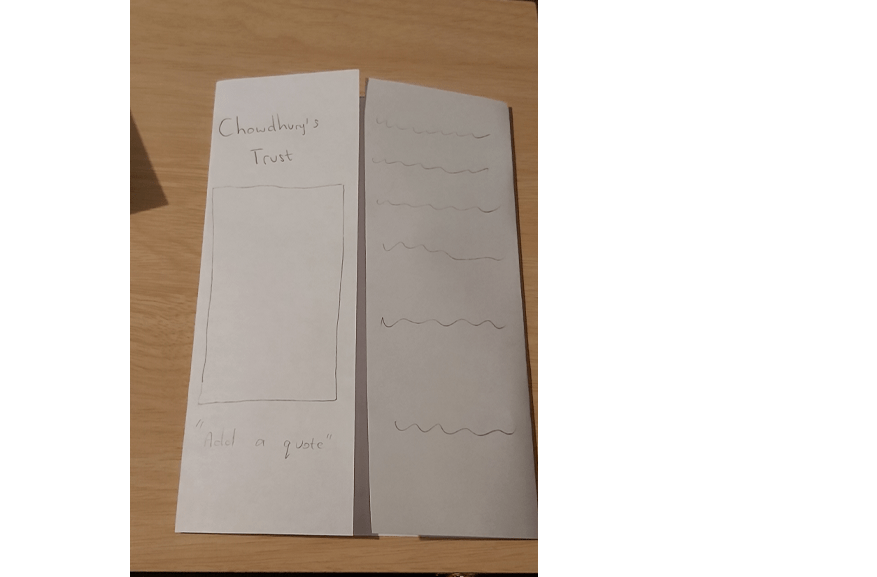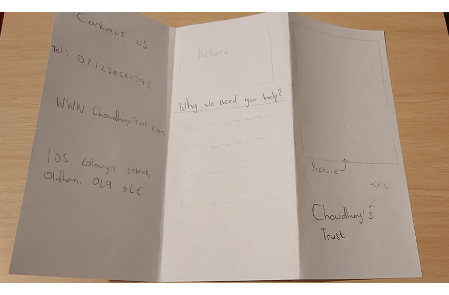Working with a sheet of A4 paper or larger if you prefer, and ignoring the actual words and subheadings, explore the different formats for leaflets that are possible. Consider and experiment with options for final size and types of paper as part of your visualisation.