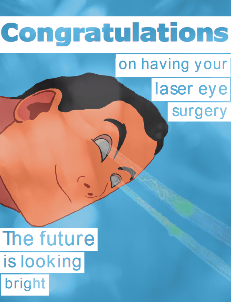 A close friend of mine recently had laser eye surgery and I thought that this would be an excellent idea to create a greetings card for. I left myself very little time for this task compared to the previous two so I got cracking straight away. I started browsing on Pinterest for some inspiration but I couldn’t find anything. so I began to type random stuff like “laser vision” and I got a few interesting pictures.