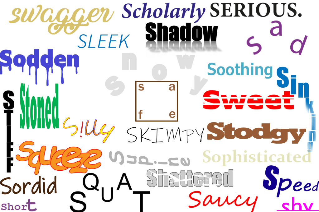 Sad Safe Sardonic Saucy Scholarly Serious Shadow Shattered Shy Short Silly Sinking Skimpy Sleek Smart Snowy Sodden Soothing Sordid Sophisticated Speed Squat Squeeze Stiff Stodgy Stoned Style Supine Swagger Sweet